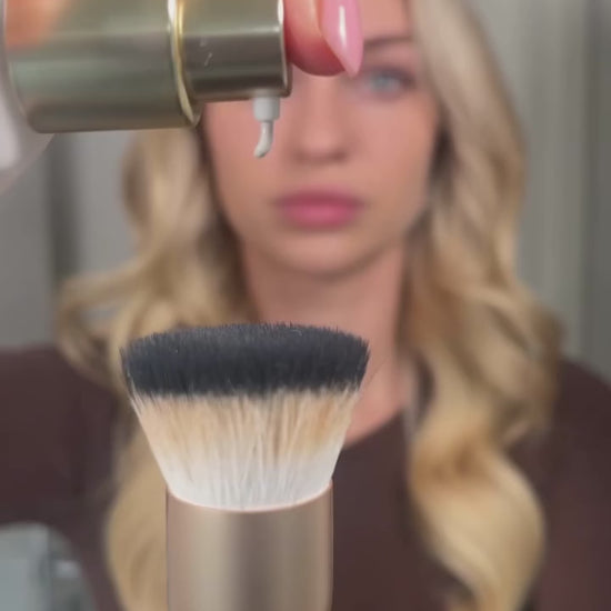 Voor het beste resultaat raden we aan om de foundation met een kwast aan te brengen. Deze techniek helpt de pigmentdeeltjes dieper in de huid door te laten dringen en zo witte strepen te voorkomen.